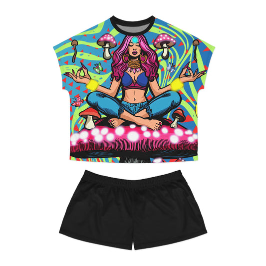 Vibrant Women's Short Pajama Set, Psychedelic Loungewear, Fun Sleepwear for Relaxation, Gifts for Her, Festival Vibes